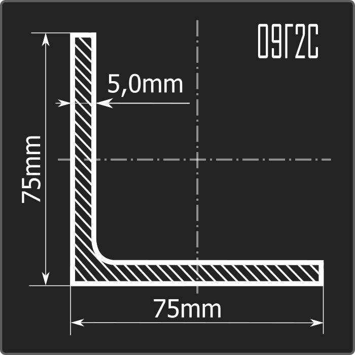 —Угол 75*75*5,0 09Г2С 12м ГОСТ 19281-2014/ГОСТ 8509-93