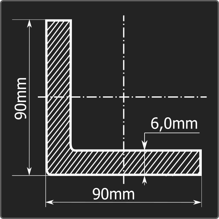 Угол стальной холоднокатаный гнутый равнополочный 90*90мм, толщиной 6,0мм и длиной 12м. Материал - углеродистая сталь. Соответствует требованиям ГОСТ 19771-93.