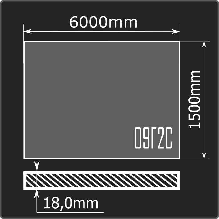 Лист стальной горячекатаный толщиной 18мм, шириной 1500мм и длиной 6000мм. Материал - низколегированная сталь. Соответствует требованиям ГОСТ 19281-2014.