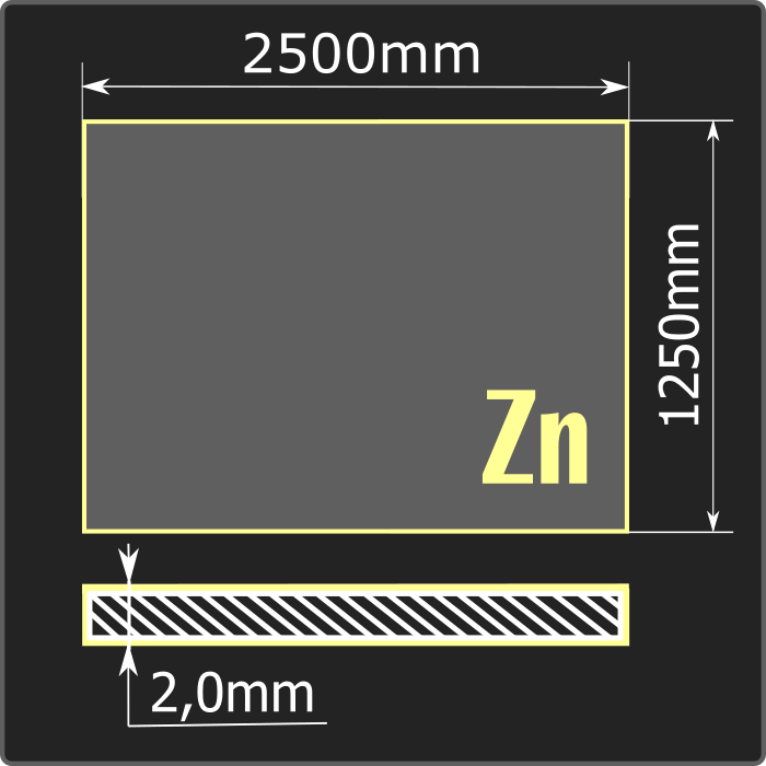Лист стальной оцинкованный толщиной 2,0мм, шириной 1250мм и длиной 2500мм. Сталь 08пс. Соответствует требованиям ГОСТ 14918-2020.