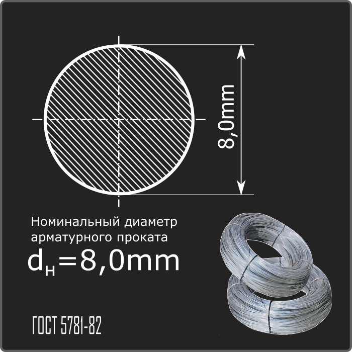 Арматурный прокат горячекатаный в мотках гладкого профиля номинального диаметра dн 8,0мм класса А240. Соответствует требованиям ГОСТ 5781-82.