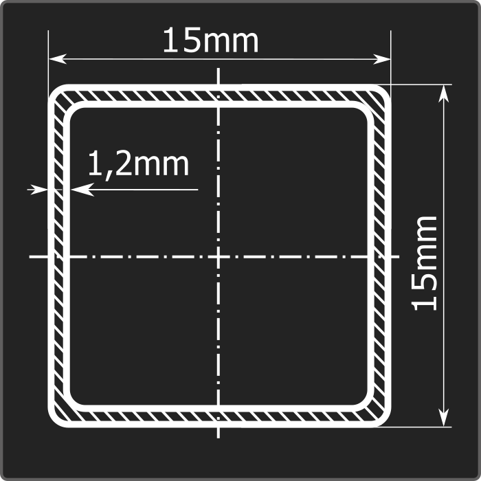 Труба профильная стальная квадратного сечения 15*15мм, длиной 6м и толщиной 1,2мм. Материал - углеродистая сталь. Соответствует требованиям ГОСТ 13663-86. Стандартный пакет: вес - 1,879тн., количество - 625шт.