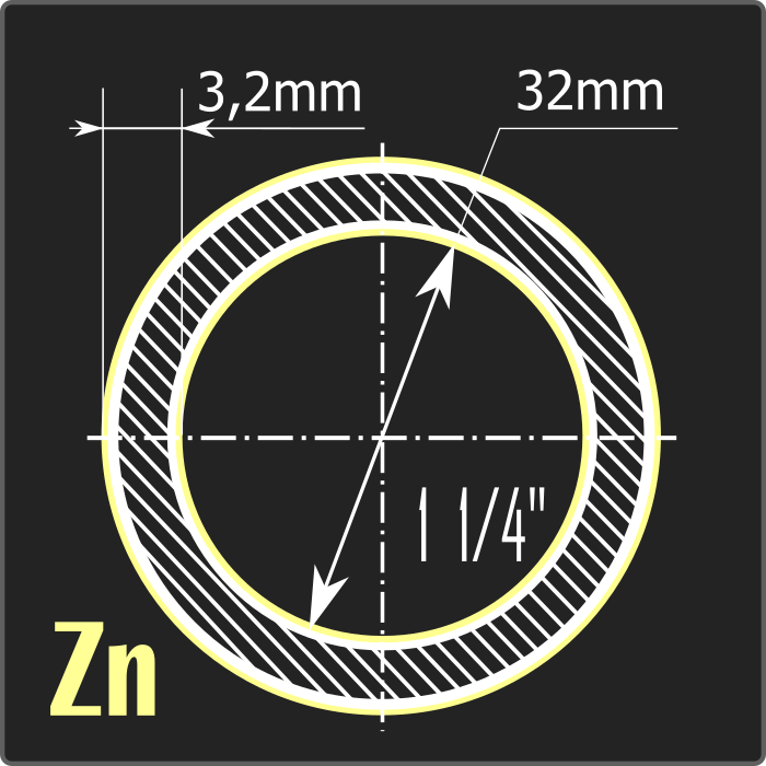 Труба стальная водогазопроводная оцинкованная внутренним диаметром 32мм, толщиной 3,2мм и длиной 6м. Тип покрытия – горячее цинкование ГОСТ 9.307-89. Материал - углеродистая сталь. Соответствует требованиям ГОСТ 3262-75.